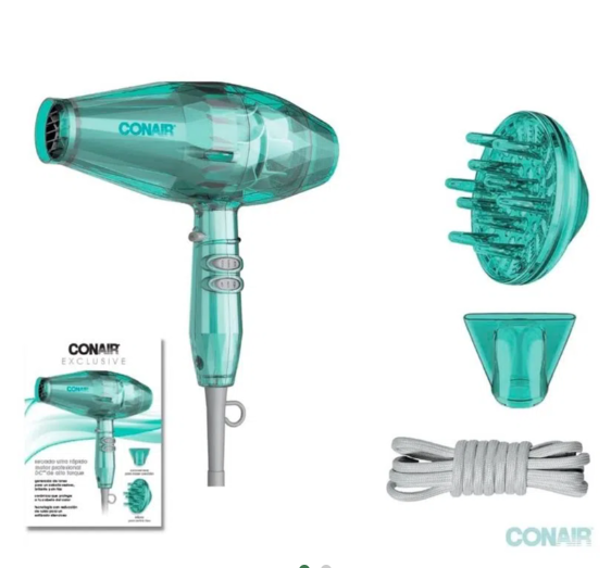 Te ayudara a que tu cabello presente un look espectacular ya que te lo dejara radiante. Cuenta con 2 velocidades, aire frío y caliente, con potencia de 1875 W, es iónica, recomendada para uso profesional y en el set encontraras concentrador, difusor y secadora.